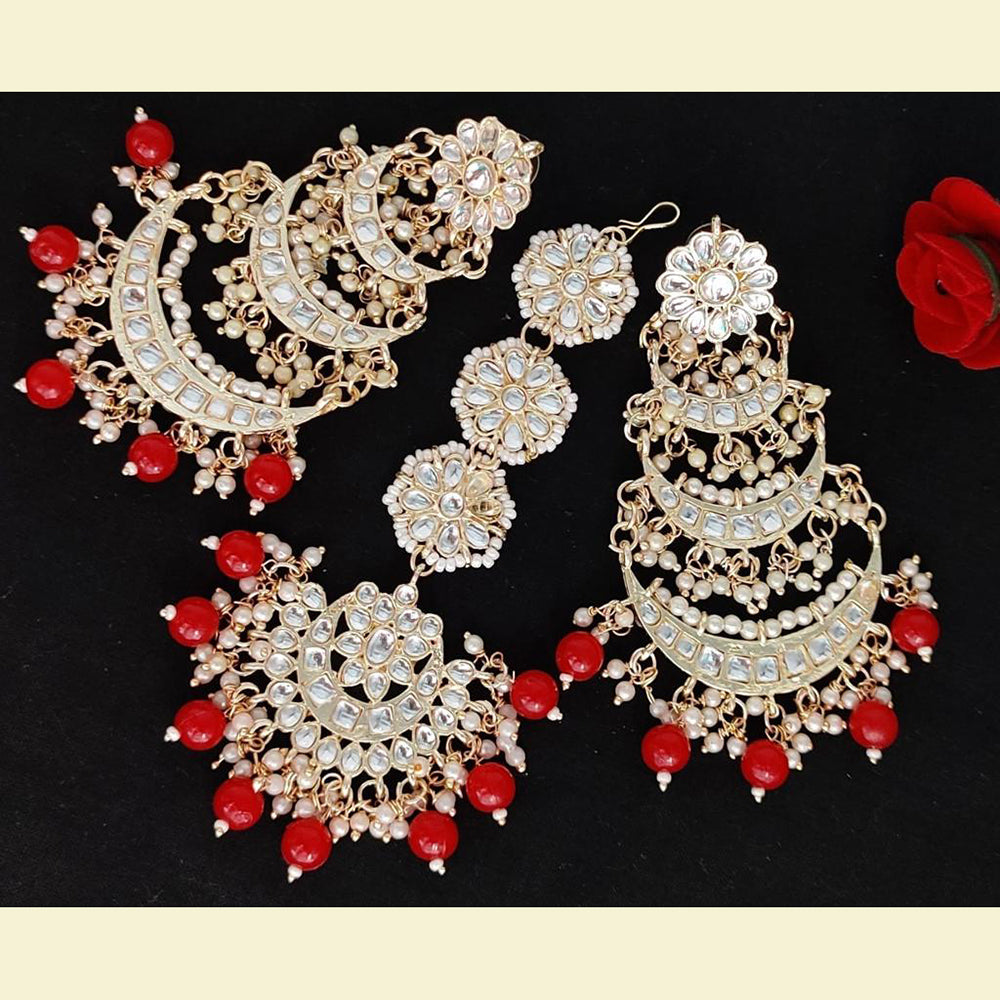 India Art Gold Plated Dangler Earrings With Maangtikka