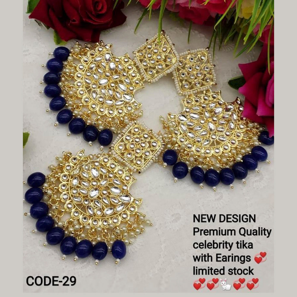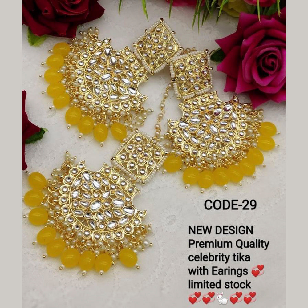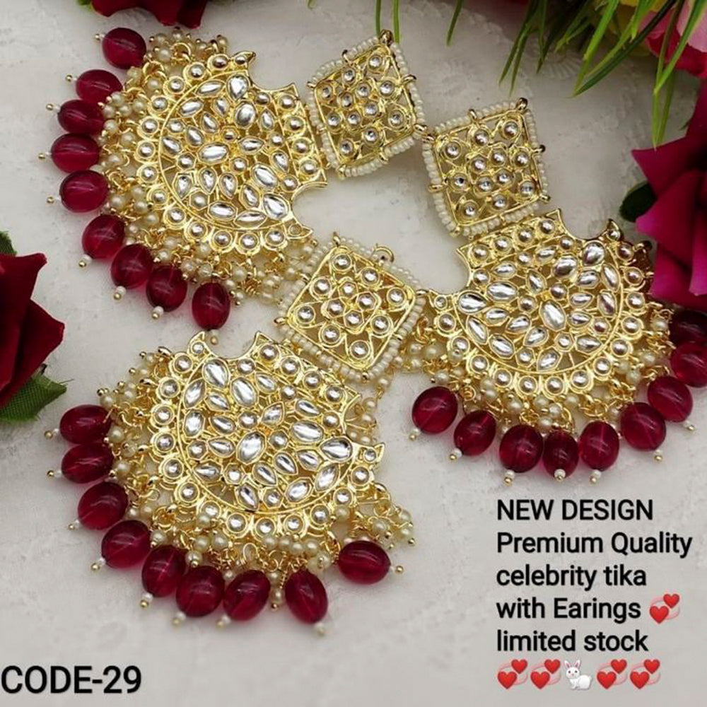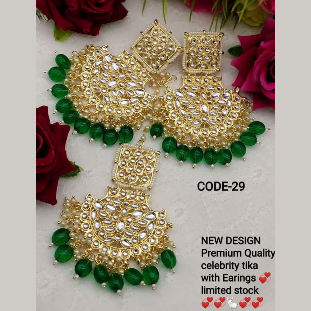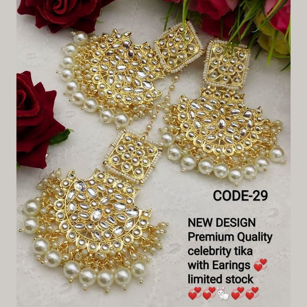 India Art Gold Plated Kundan Stone Earrings With Mangtikka