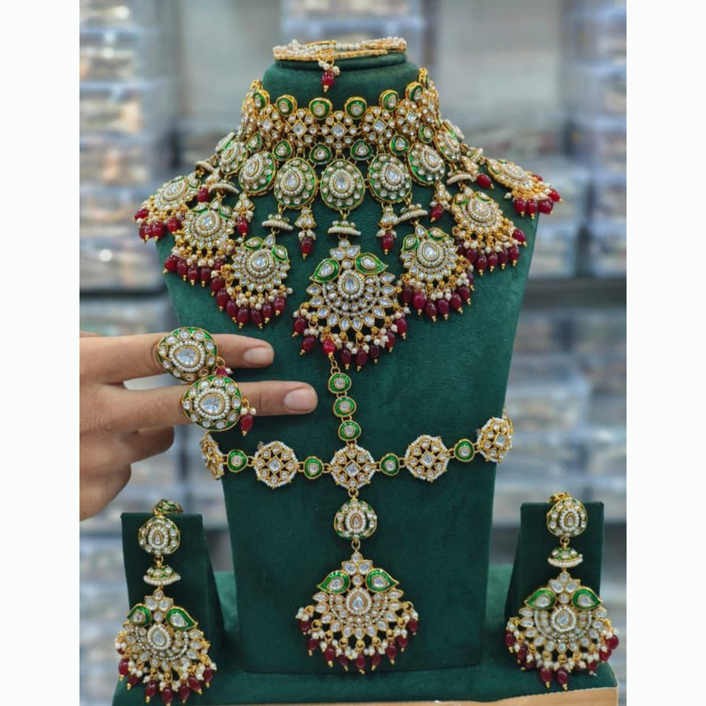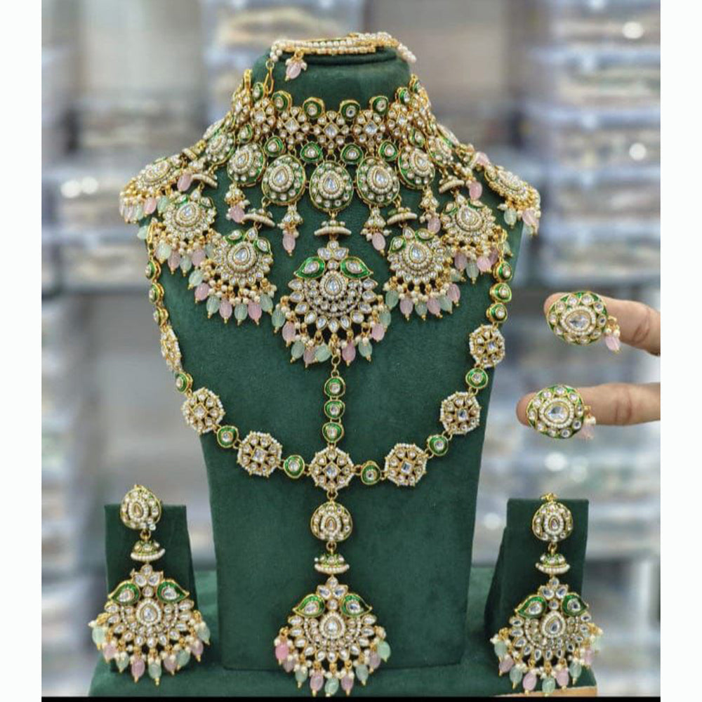 India Art Royal Kundan Stone And Pearl Meenakari Semi Bridal Necklace set