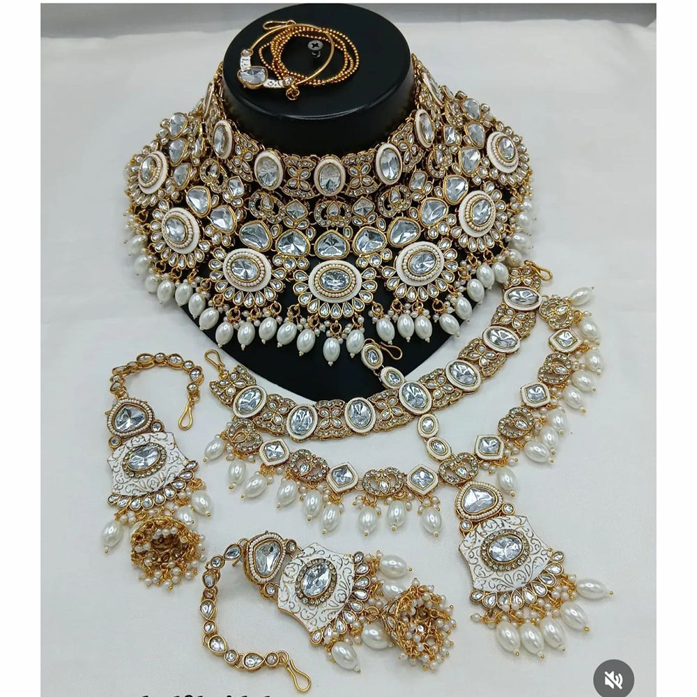 India Art Timeless Kundan Stone And Pearl Semi Bridal Necklace set