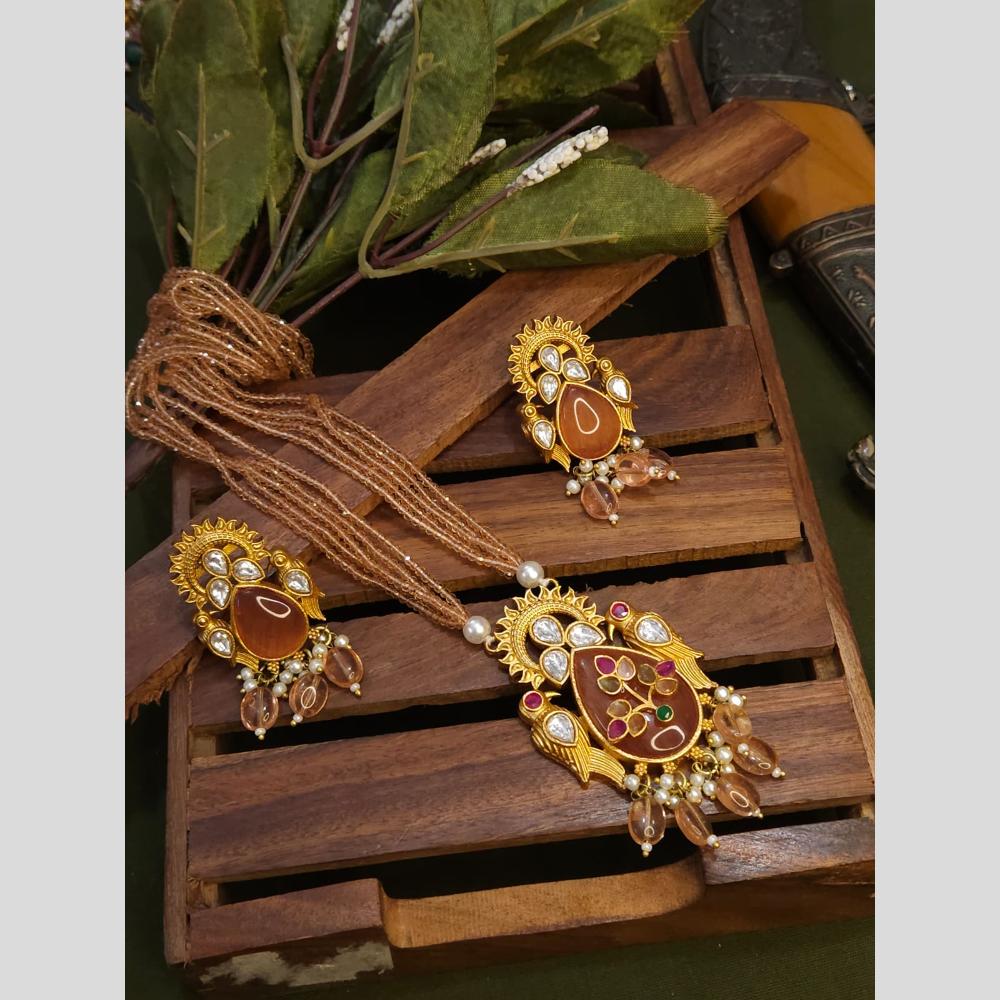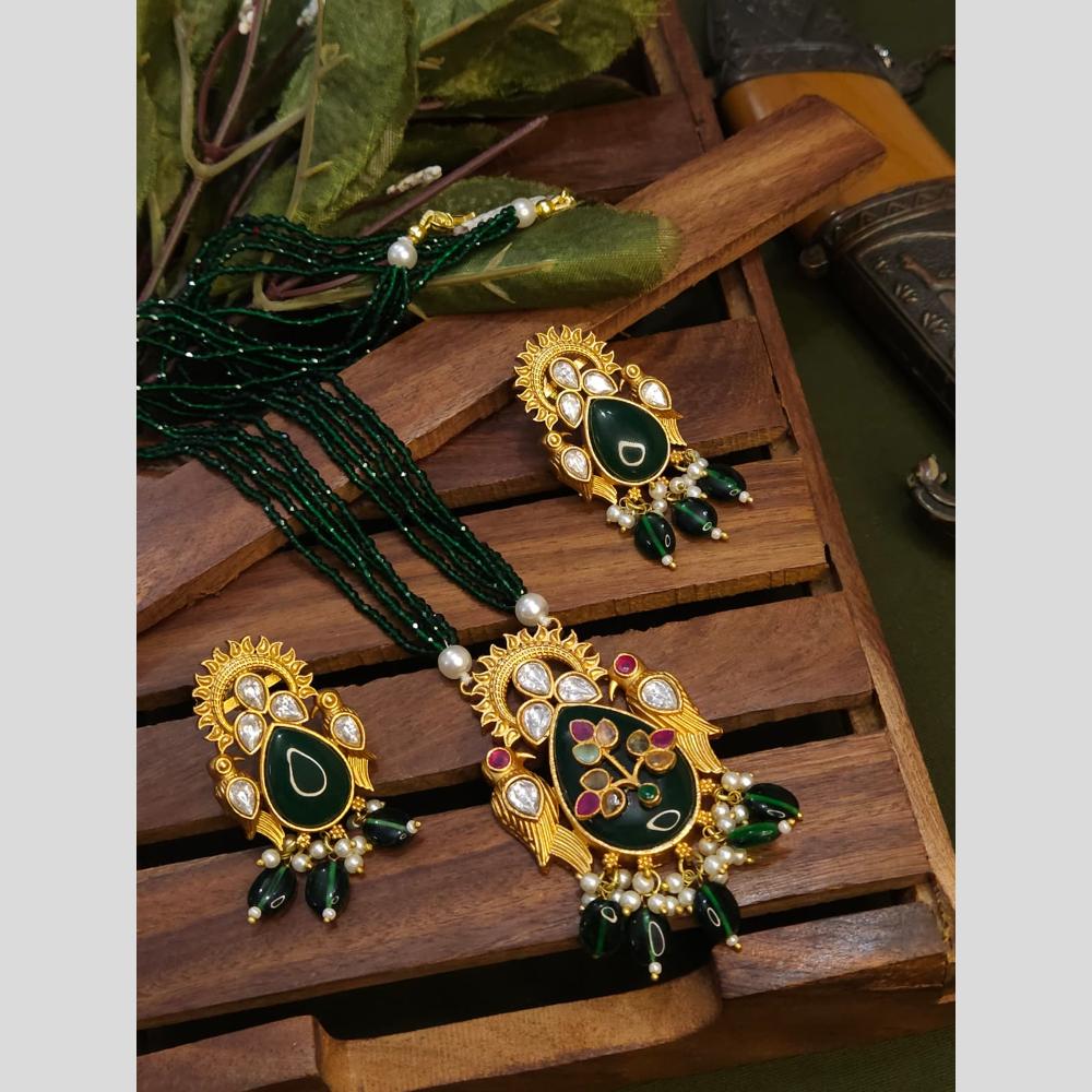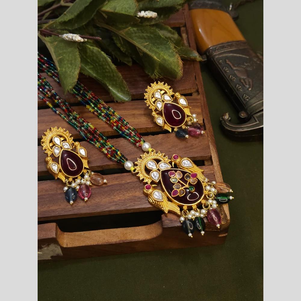 FS Collection Gold Plated with Kundan & Beads Perfect for Traditional Wear Long Necklace Set