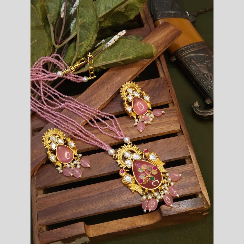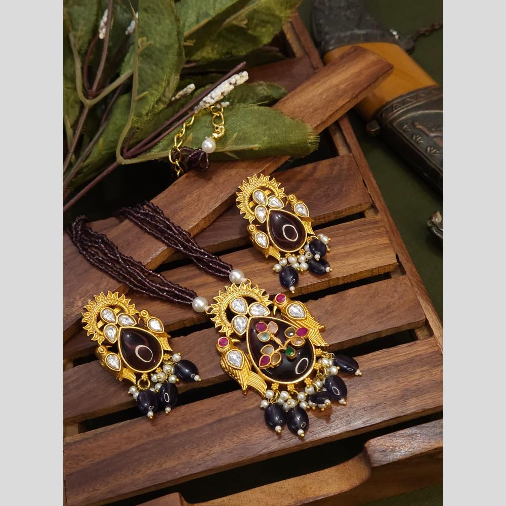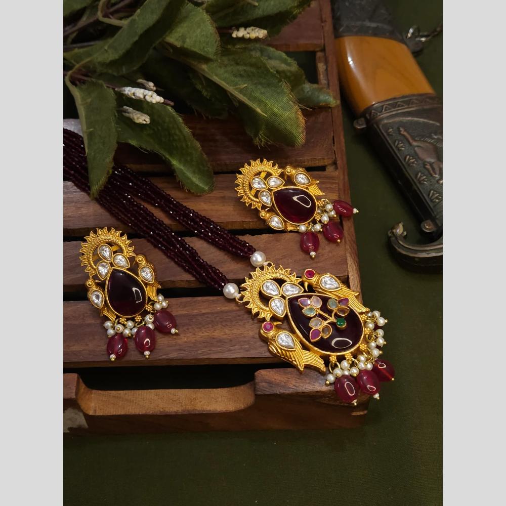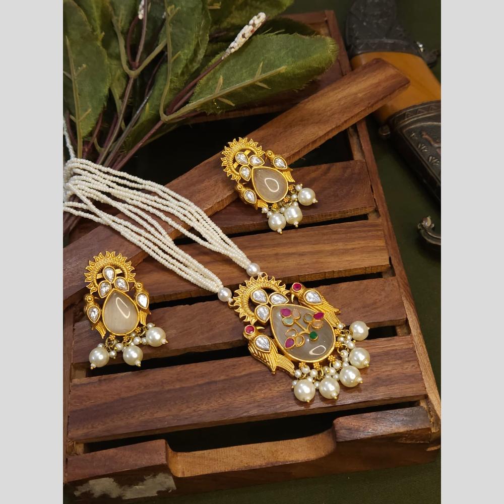 FS Collection Gold Plated with Kundan & Beads Perfect for Traditional Wear Long Necklace Set