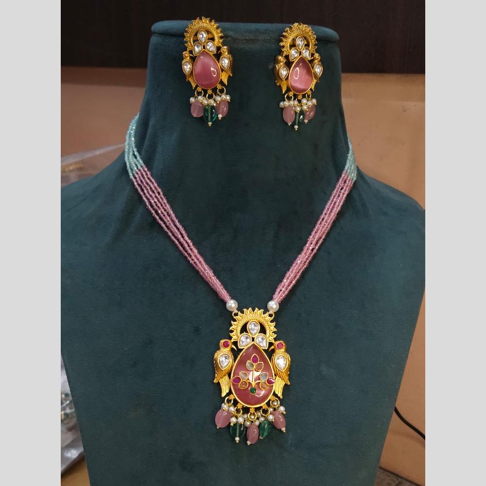 Discover timeless beauty with the FS Collection Gold Plated Kundan & Beads Long Necklace Set, designed to elevate your ethnic and traditional wardrobe. This exquisite necklace set combines the luxurious appeal of gold plating with the intricate detailing of kundan stones and vibrant beads, creating a stunning, eye-catching accessory. Available in a wide range of colors, including black, blue, dark pink, dark purple, green, light pink, mint green, multi, peach, green & pink, and white, this necklace set adds a perfect touch of elegance and sophistication to any ensemble...... Note: Image may be vary slightly from the actual product.