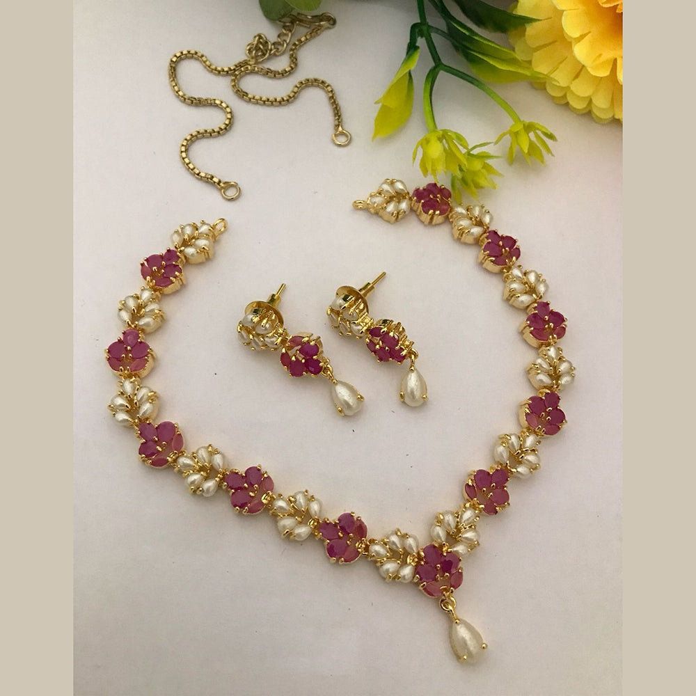FS Collection Radiant Bloom Crystal and Pearl Necklace Set