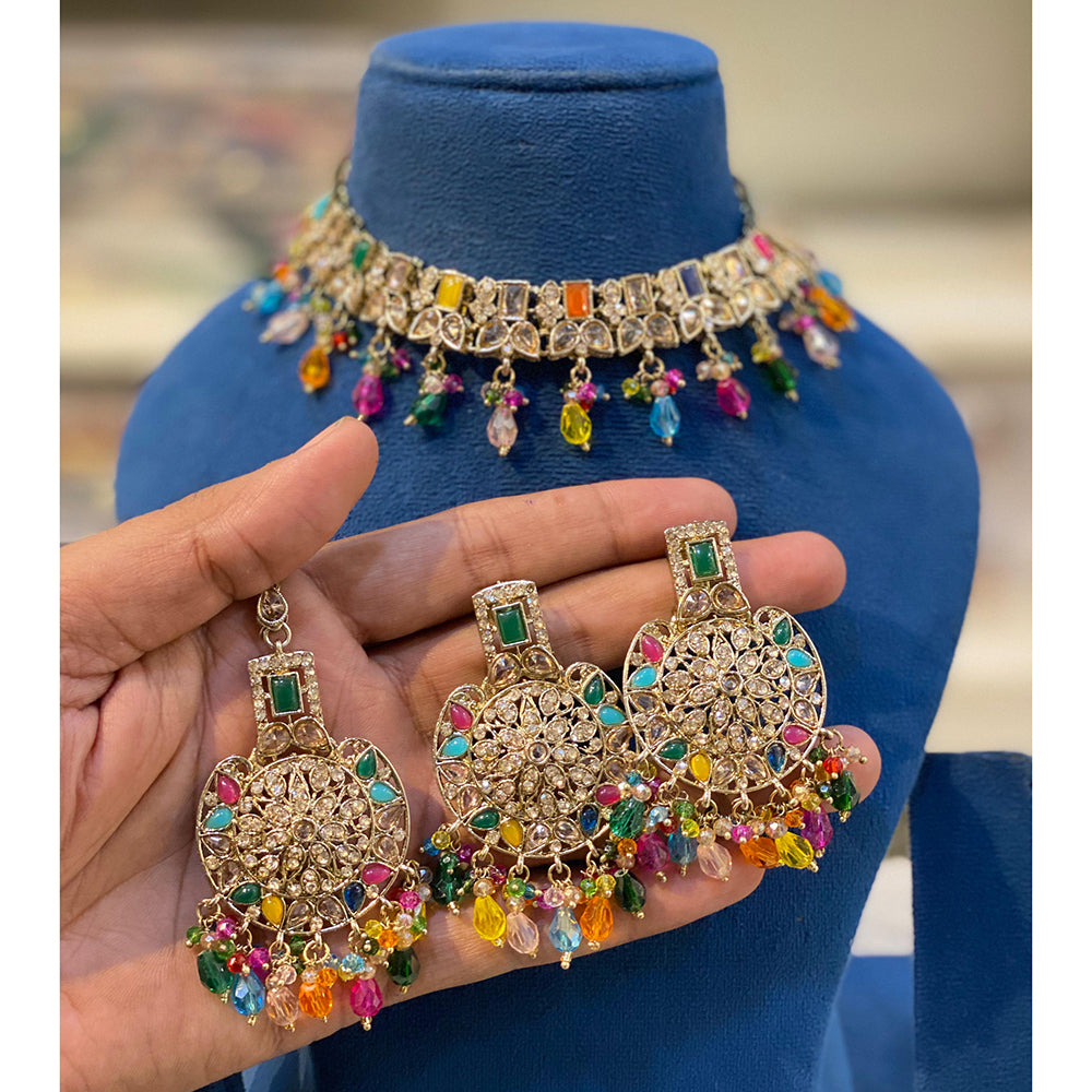 Hira Collections Sparkling Crystal And Pearl Choker Necklace Set