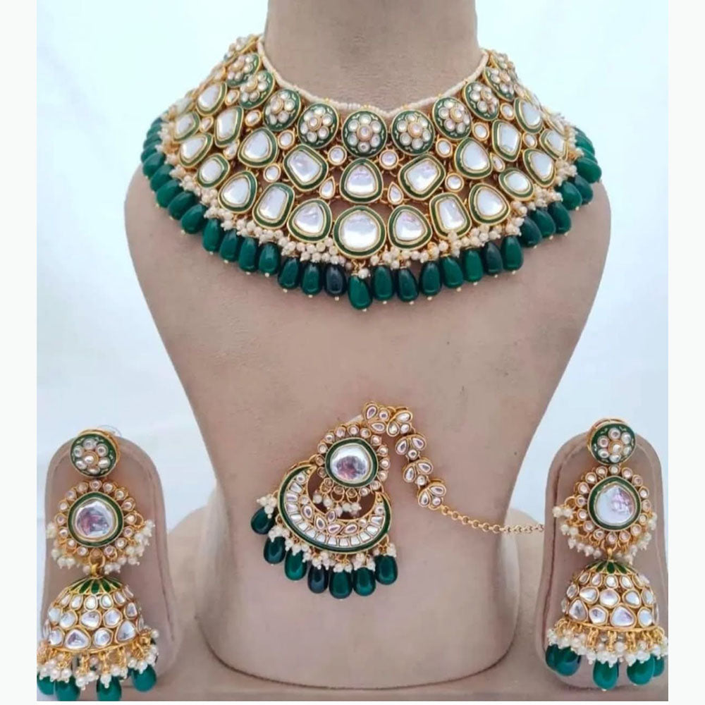 The India Art Timeless Beauty Kundan Beads and Pearl Necklace Set combines traditional craftsmanship with elegant design. Featuring meticulously hand-set Kundan stones paired with lustrous pearls, this necklace set adds a refined touch to any ensemble. Its intricate artistry highlights India's rich heritage, making it an exquisite choice for special occasions and cultural celebrations. Durable yet delicate, it offers lasting beauty that complements both classic and contemporary styles. Note: Image may be vary slightly from the actual product